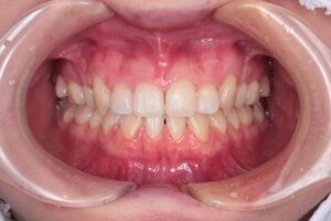 ワイヤー矯正なので、歯の表側に装置が付きます。